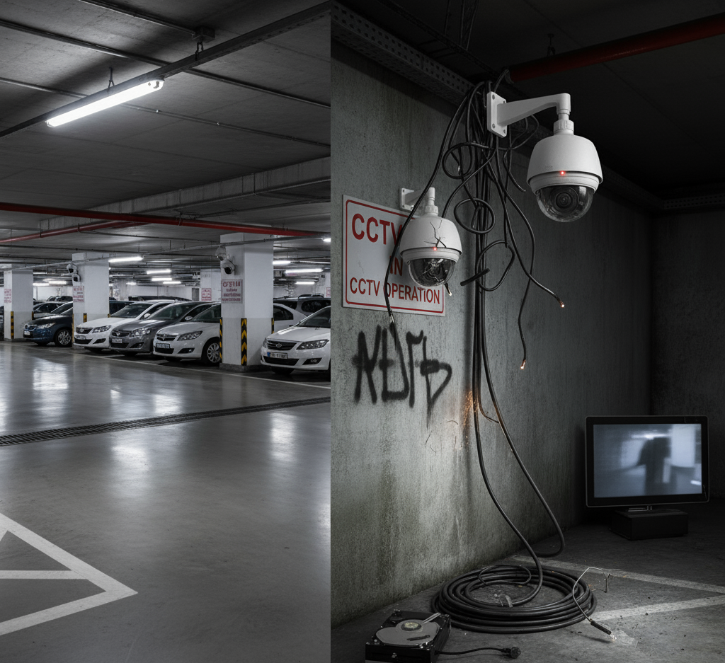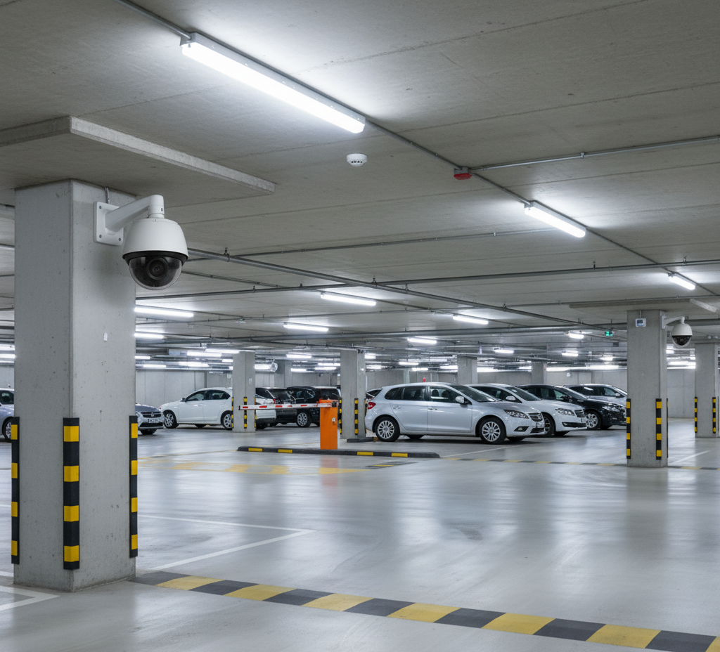 • افزایش امنیت ساکنین و کاربران پارکینگ: پارکینگ‌های تاریک و خلوت می‌توانند محلی برای وقوع جرایم علیه افراد باشند. حضور دوربین‌ها می‌تواند حس امنیت را برای کاربران افزایش دهد.